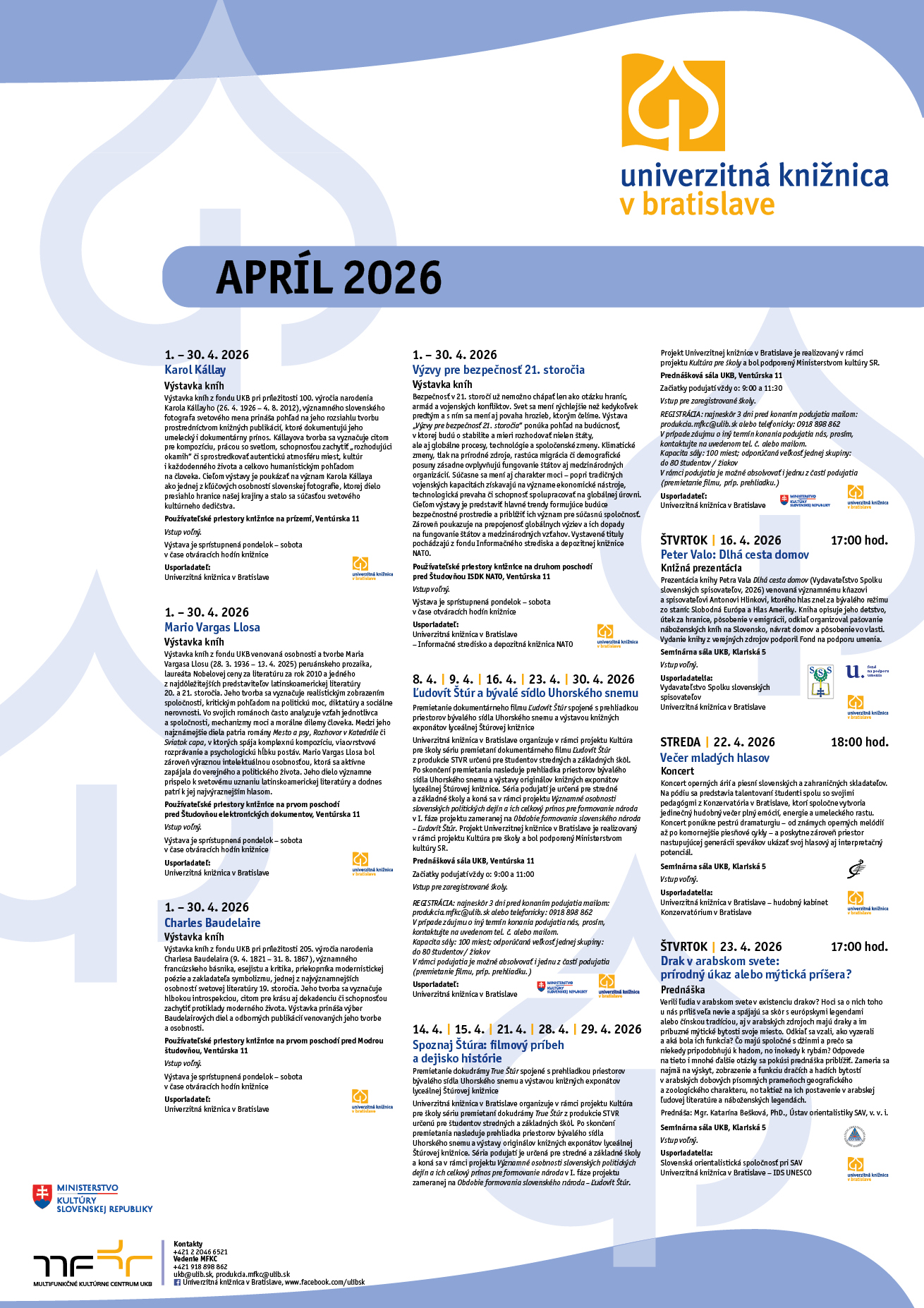 Slovensky Podujatia v UKB: Apríl 2026