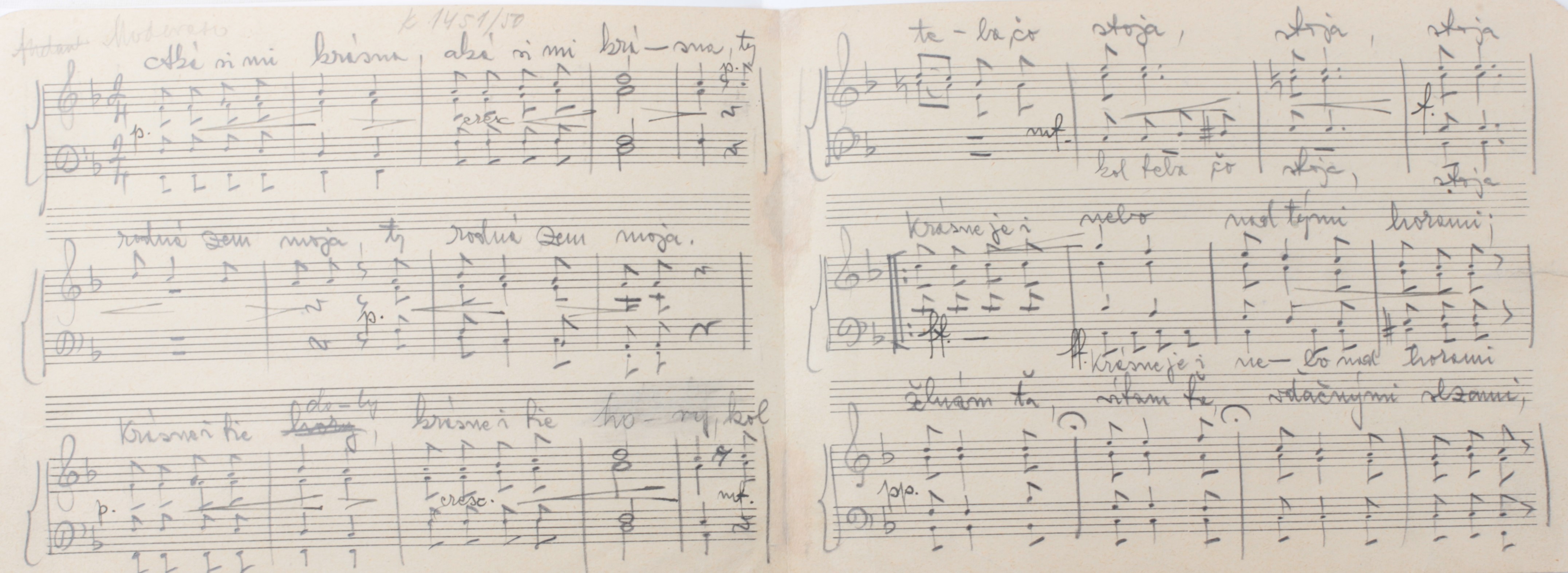 Autograf Eugena Suchoňa z roku 1930 Aká si mi krásna, Hudobná pozostalosť Miloša Ruppeldta, Ms 1148/XLIV-1